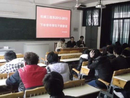 当前位置: 系部首页>学生工作 班干部是班级日常工作的组织者和领导者,为使班干部提高自身能力,明确其工作职责,从而能更好的工作,把工作搞上去。机械系党总支负责人张星和大一大二辅导员于?xml:namespace>