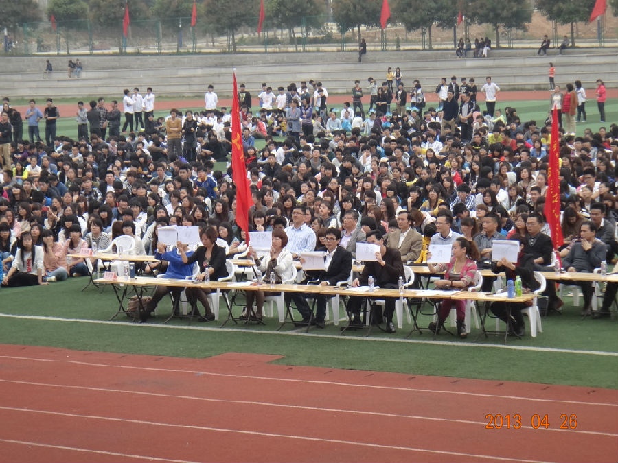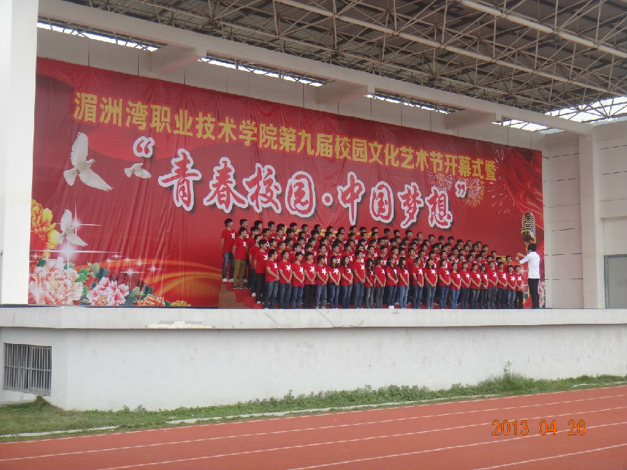当前位置: 系部首页>学生工作为全面贯彻党的教育方针,促进学生全面、和谐发展,加强校园文化建设,丰富校园文化生活,培养学生良好的审美观和陶冶学生良好的审美情趣。2013年4月26日,由湄洲湾职业技术学院举办的第九届校园文化艺术节开幕式暨“青春校园,中国梦想”红歌汇演于400米操场正式开幕。出席本次开幕式的有学院领导以及各系部的党总支书记和团总支书记。