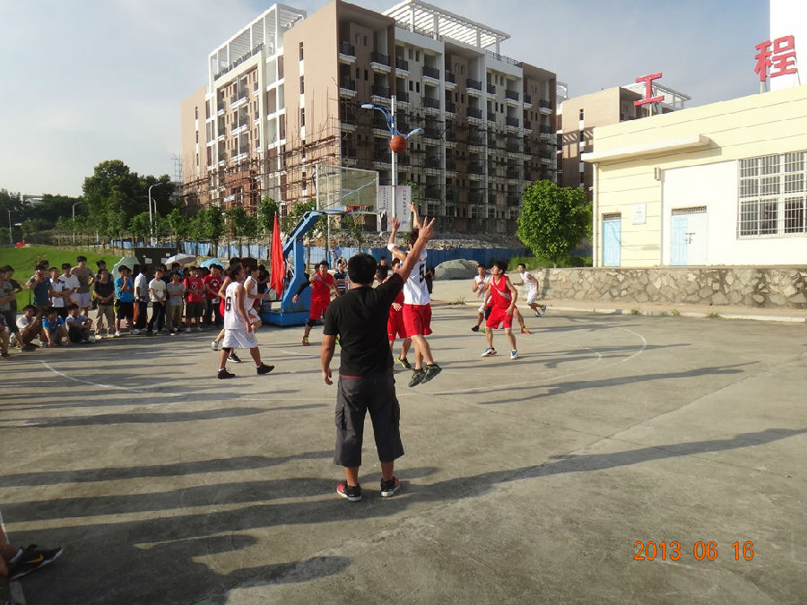 当前位置: 系部首页>学生工作青春如梦,骄阳如火。2013年6月16日下午4点30分,在实训楼新篮球场上,湄洲湾职业技术学院迎来了院篮球赛的决赛。冠亚军争夺战是机械工程系与工商管理系之间进行。尽管烈日炎炎,但这并不能阻止同学来观看这场龙争虎斗的比赛。机械系书记李仲清老师,团总支书记林俊老师也亲临现场为机械系的健儿们加油助威。