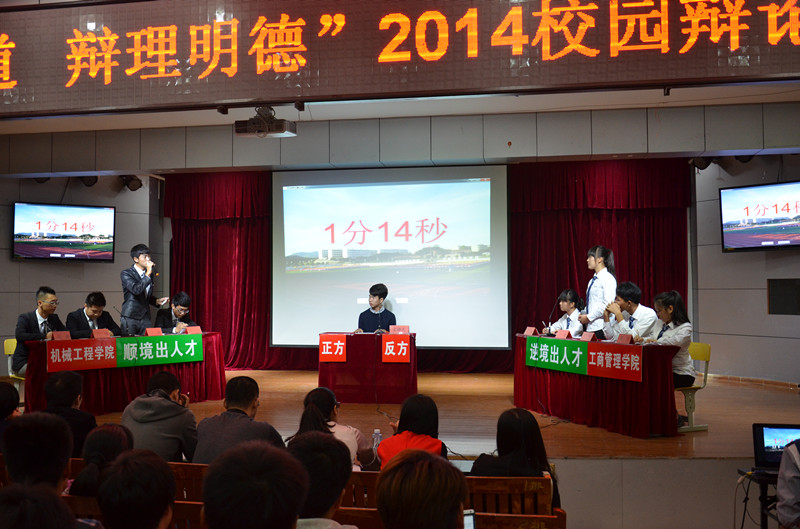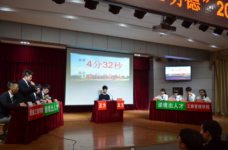 当前位置: 系部首页>学生工作 2014年11月25日晚上七点半,校园辩论赛总决赛在17#201如期举行。经过一周的准备,总决赛的热情由机械工程系和工商管理系点燃。本次辩论赛的主题是顺境出来人才还是逆境出人才,我系代表正方,工商系代表反方。