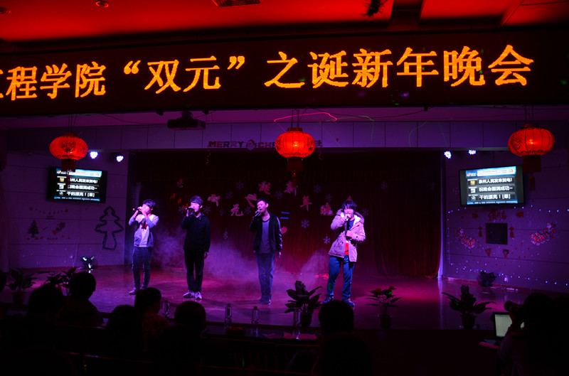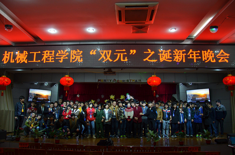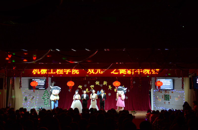 当前位置: 系部首页>学生工作 2014年12月26日晚上七点,我系在17#201举办“双元”之诞新年晚会。晚会还没开始现场已人来人往气氛十分活跃。现场的屏幕上不断滚动着大家微博发来的祝福。到场的嘉宾有福建元通达设备有限公司郑慰伟总经理,学工处副处长林俊老师,系团委书记翁歆老师,社区辅导员陈录清老师、范健健老师,蔡海雄老师和李佩君老师。