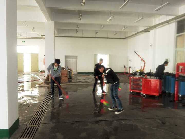 志愿者们简单分工之后便各自忙活起来,扫地、冲地、拖地、倒垃圾……系部书记许志敏老师也亲自动手,参与进来,大家干得热火朝天。天气虽然寒冷,但大家的内心是火热的,有的同学甚至脱去厚厚的棉衣。同学们不放过每一个死角,就连小小的污迹也耐心地去清理干净。不一会儿,实训楼便焕然一新。