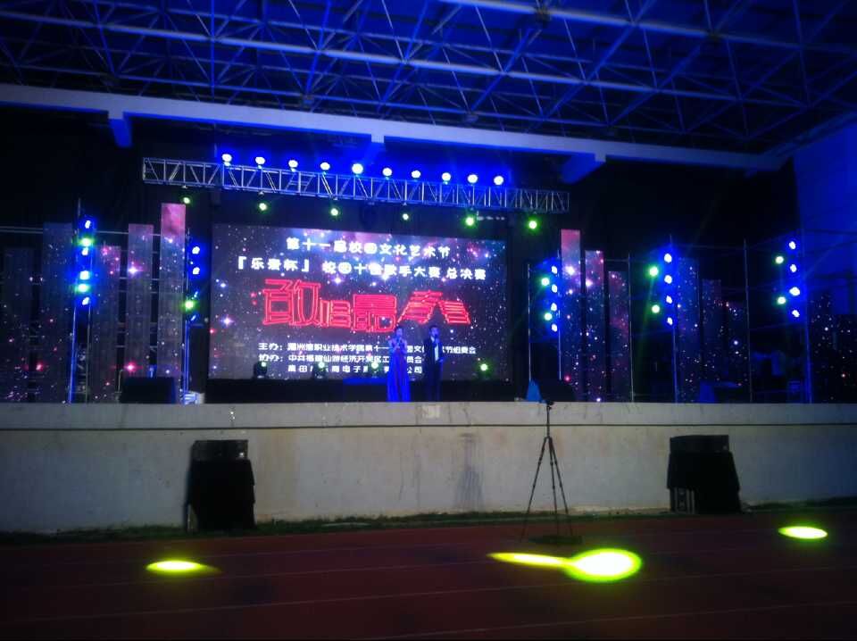 当前位置: 系部首页>学生工作2015年6月10日晚上七点,第十一届校园文化艺术节“敢唱最青春”校园十佳歌手总决赛在四百米操场拉开序幕。本次比赛由博仲斌老师、陈炜老师、郑佩佩老师、翁歆老师、连一萍老师、王琦老师等人担任此次评委。