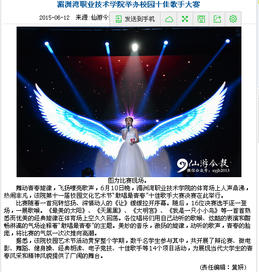 湄洲日报等多家媒体:湄职院“敢唱最青春”校园十佳歌手赛