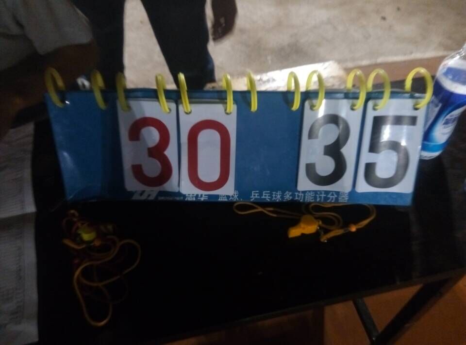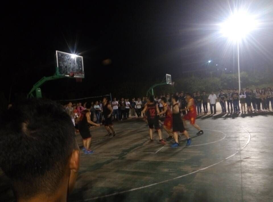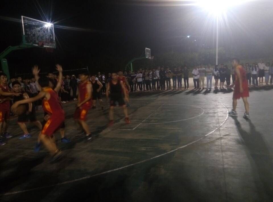 这是决赛的最后一场了,在黑夜中的较量,因为场地在前一天下雨了,有雨水,小伙伴们只能等干了才开打