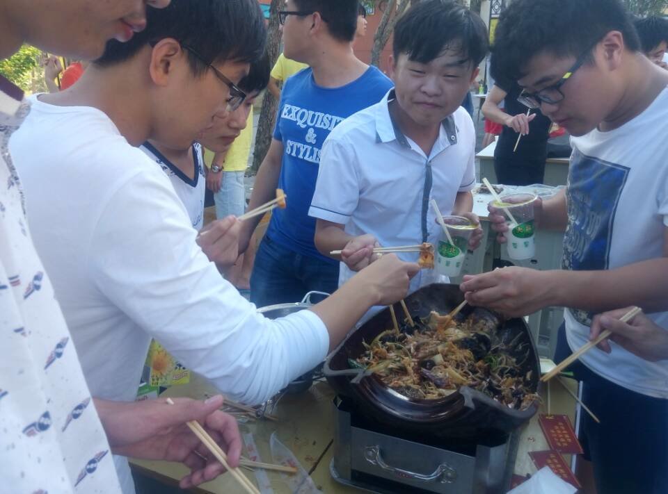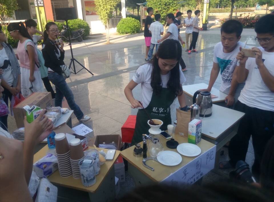 实践部和体育部在机械楼广场 有烤鸭双皮奶扁食烤鱼等美食还可以自己动手包现场煮,更有资深咖啡师空降等。大家在现场吃货本性暴露。食物也都被吃的精光,美食美静齐聚一起。小编也都口水直流。
