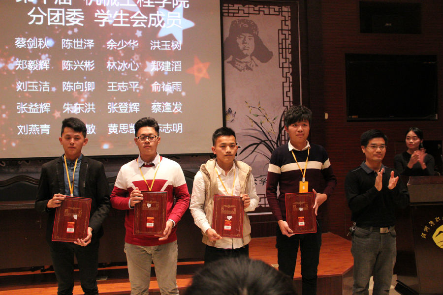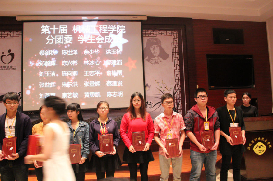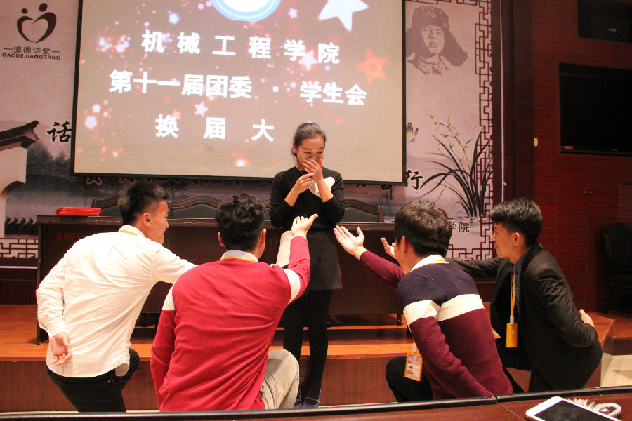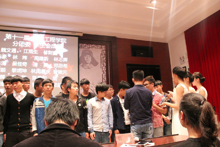 机械工程学院第十一届分团委、学生会主席团的就职讲话。(江雨生、林财鑫、魏文通)