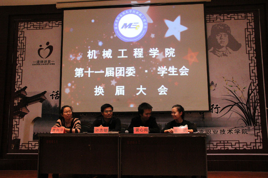 今晚七点,我们系部在图书馆一楼的道德讲堂进行了第十一届换届大会,经过了精心的流程策划,整个大会也是井然有序的进行着,大家都很有感触,在播放了PPT的时候,在学生会的日子仿佛历历在目,满满的都是回忆,送老迎新,正如辅导员说的,我培养了一批骨干,他们在做的很好的时候却又要离开了,又将迎来一批新的成员,感伤大三的离别,时间总是流逝的很快,在我们懵懂的学习的时候,它却悄悄的溜走了,一年的时间过得很快,小编觉得:好好珍惜现在,别让青春在宿舍里度过去了。