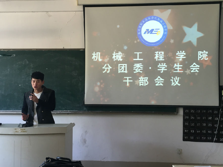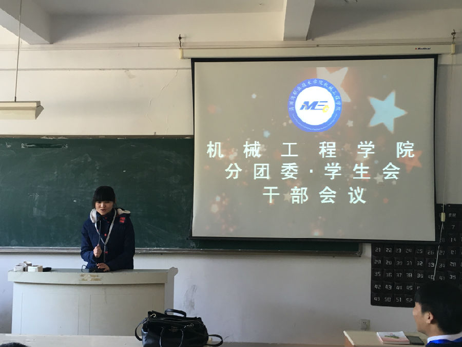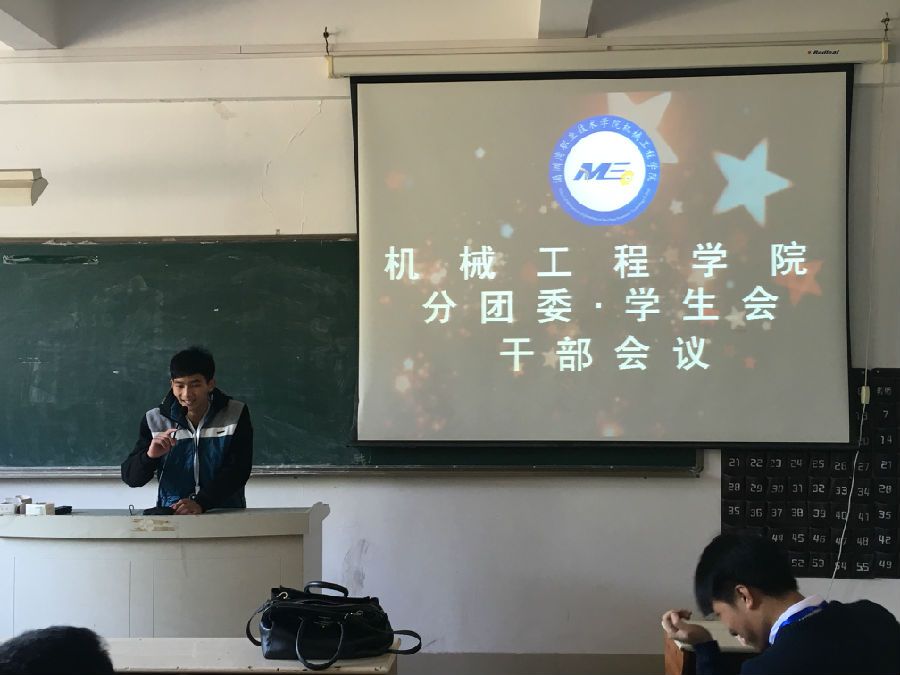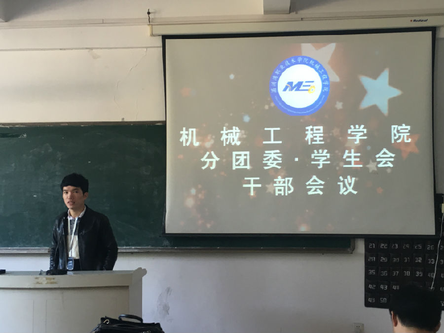 当前位置: 系部首页>学生工作今天中午一点三十分,机械工程学院分团委学生会干部会议在33#303举行,在大会上,主要是给大家熟悉下学生会的主要流程,让大家彼此互相认识下,其中还有个环节是让大一的上台说说自己在学生会这段时间的体会,大家也都敢勇于表现自己。最后,希望大家在接下来的日子里能把这些活动干好。加油,你们是最棒的。