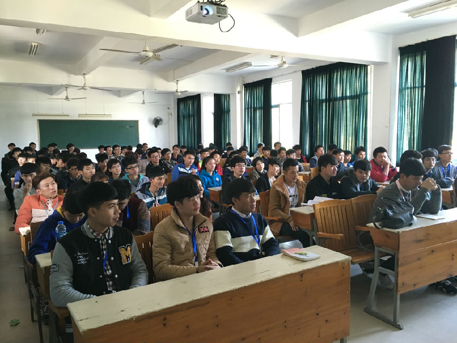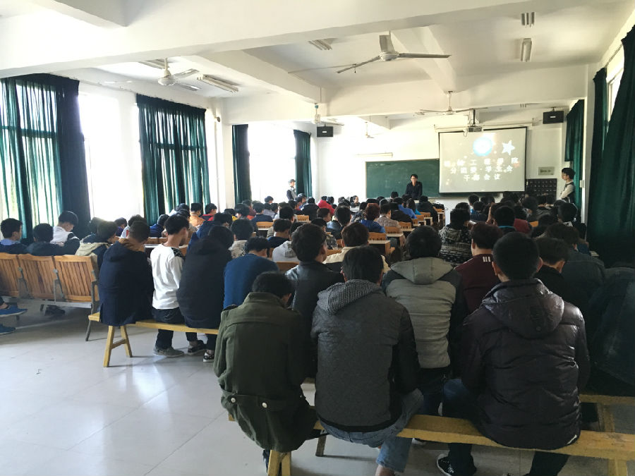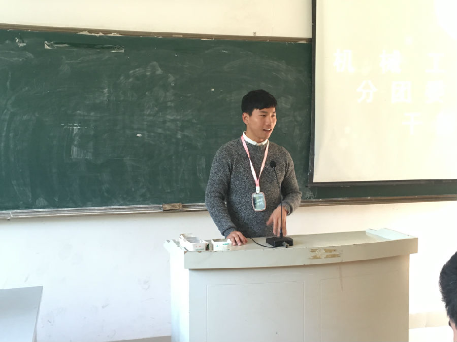 这是我们的机械系分团委书记翁老师,在和我们讲“做人”的经验,不忘初心,方得始终
