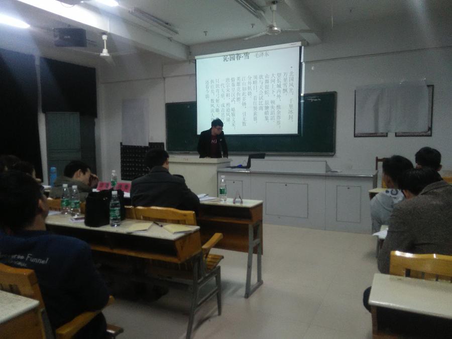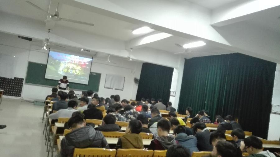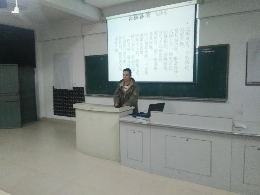 当前位置: 系部首页>学生工作 晚上七点,在32#302,机械系的同学们举行了“赏中华文化,颂国文风采”的朗诵比赛。每位选手都饱含深情的为我们朗诵,在他们看来这不仅是一场比赛更是表达自己炙热情感的舞台。其中,让小编印象深刻的是张智钦最后更是有两位同学因为扬扬洒洒地把沁园春雪和离骚都背诵了出来,让小编惊讶不已,最后有一男一女并列第一,评委老师决定让他们加赛沁园春雪,来进行最后冠军的角逐!