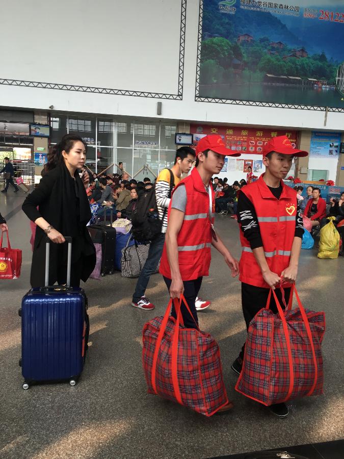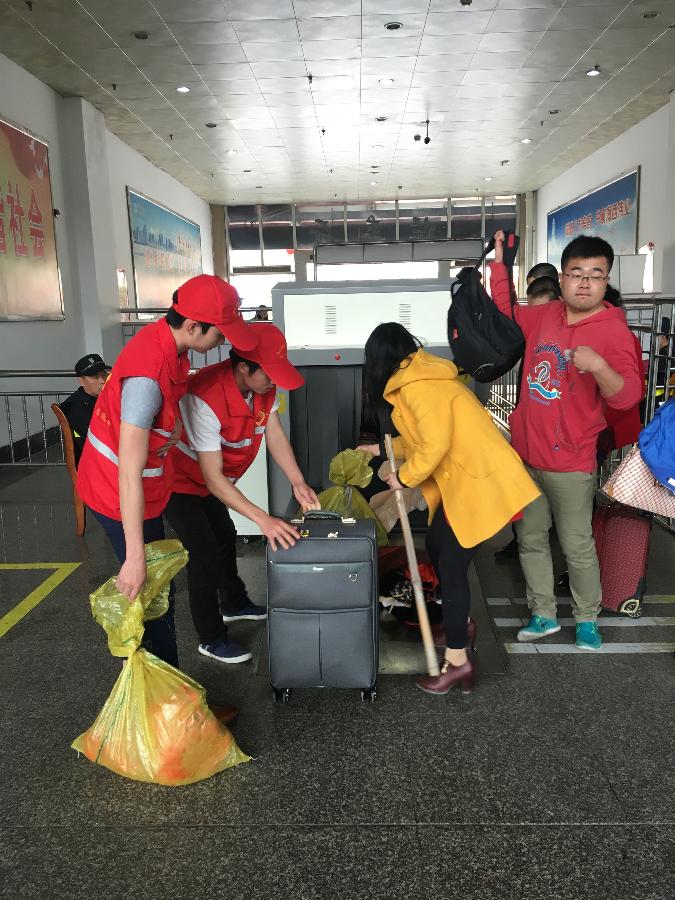 当我们的志愿者帮这位姐姐把行李提到上车口时,这位姐姐问,能不能帮她把行李提上车,志愿者们只好一口答应她的无理要求了,没办法,谁让我们是志愿者呢!当然我们的服务也获得了她的五星好评!
