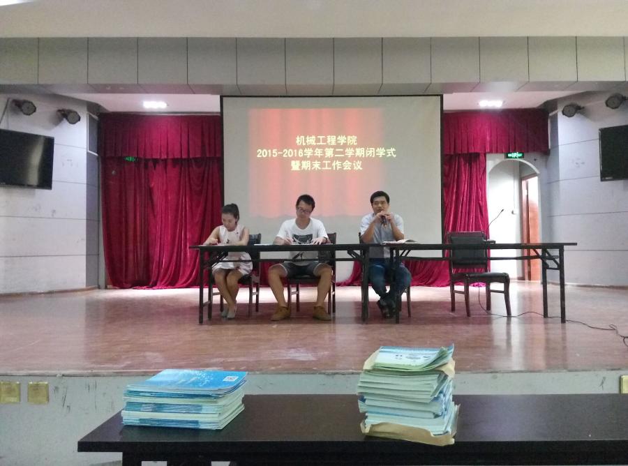 2016年6月24日上午十点半,在17#201教室机械系全体在校生参加了由机械系书记许志敏老师主持的机械工程学院2015-2016学年第二学期闭学式暨期末工作会议,会议阐述了暑期安全问题和下学期的开学报名时间以及教室卫生门窗关好等事项。