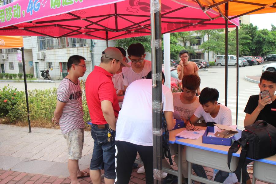 9月03日在机械楼广场大二代班帮新生完成注册安排宿舍