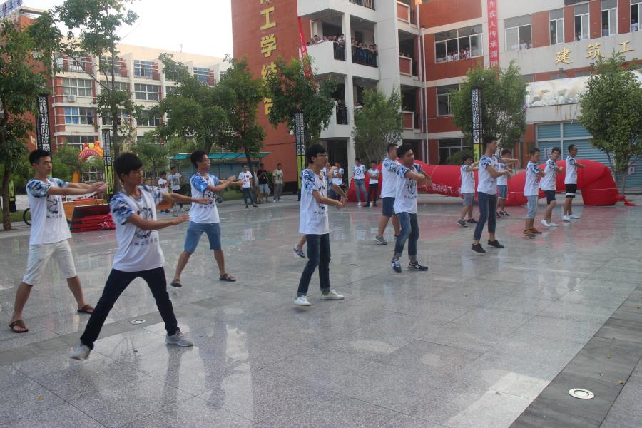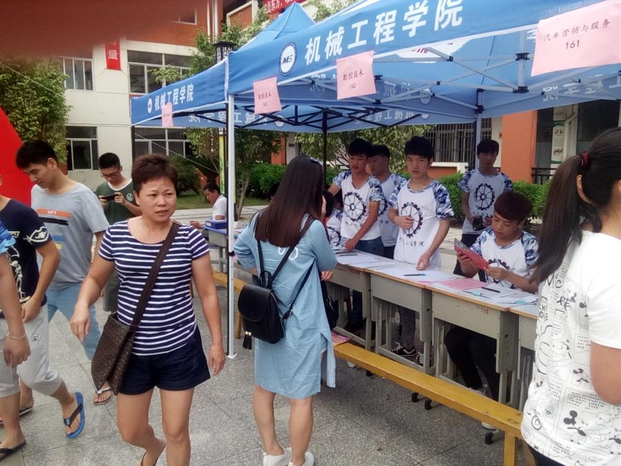 迎新工作主要分成两个部分进行:新生接待队和新生登记处。此次接待活动实行“一帮多、负责到底”的制度。新生接待队在校门口和机械楼广场分别举着写有带有“机械学院”的牌子,在接到新生后,由大二学长帮助他们搬运行李到新生登记处,然后在代班学长的指导下,一步一步办理各项手续,直到办完手续进入宿舍休息。由于新生报到时间不同,大二学生坚守岗位,实现分班制度,做到“何时报到,何时接待”,让大一新生顺利入学。直至下午4点半,新生基本全部报道完毕。因为有部分新生未能看见大二学长跳萨瓦迪卡,所以我们学长下午5点在机械楼广场再跳一次,来表示我们学长对小鲜肉的欢迎。