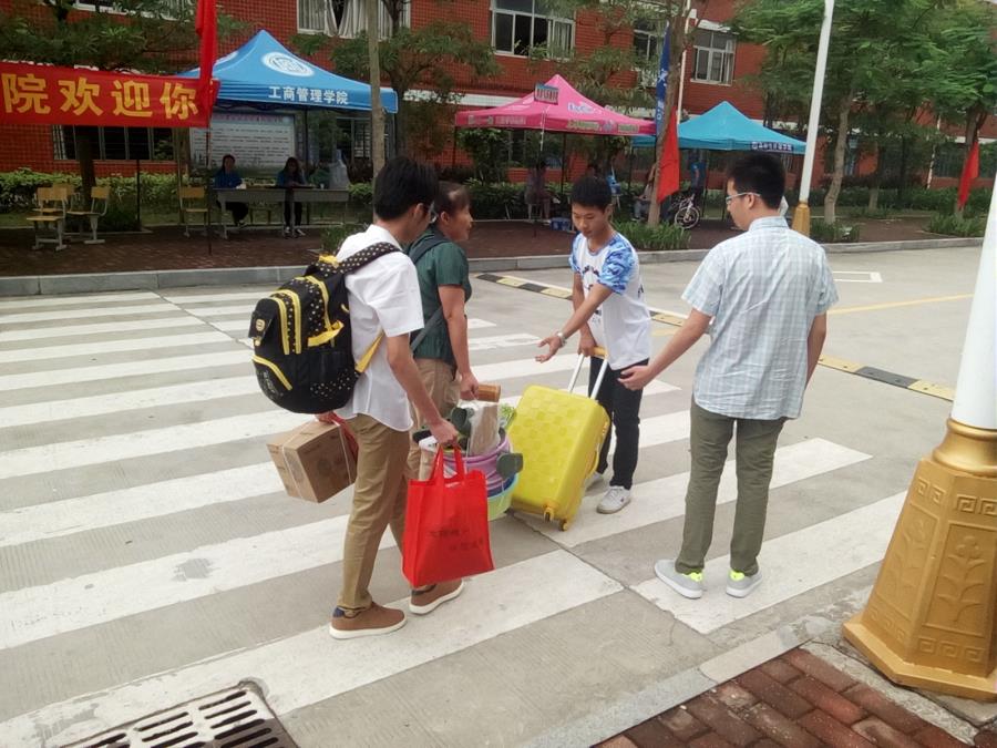 9月02日在大专校门口新生接待点迎接提前到来的新生