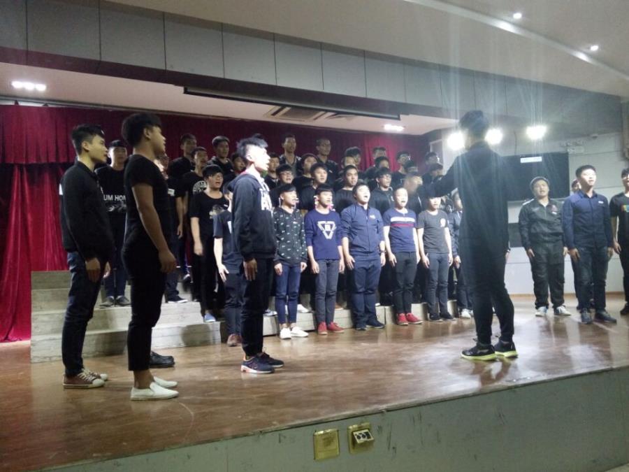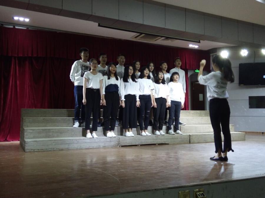 同学们苍劲有力的唱着红歌