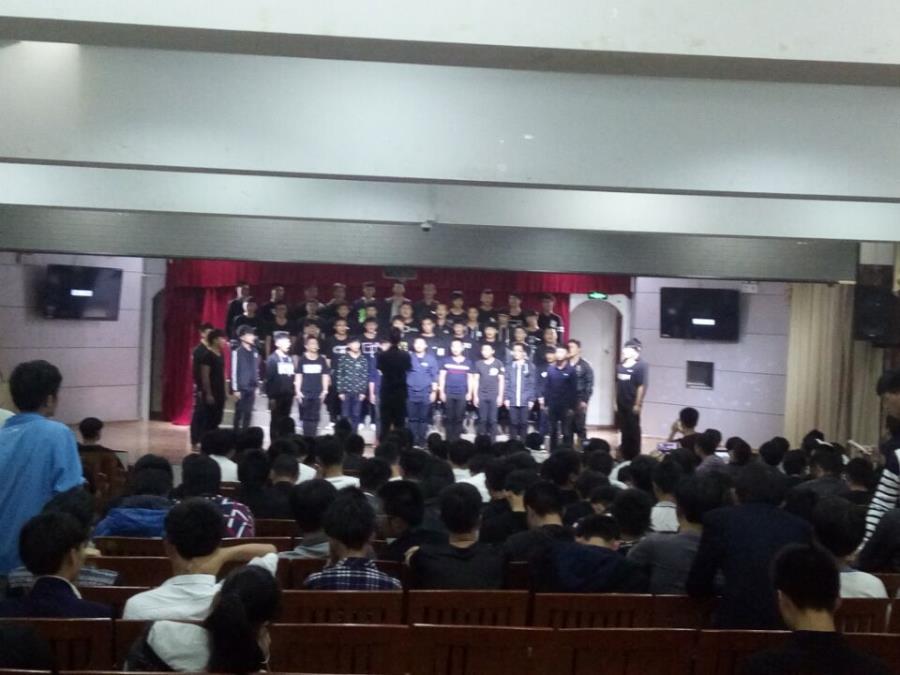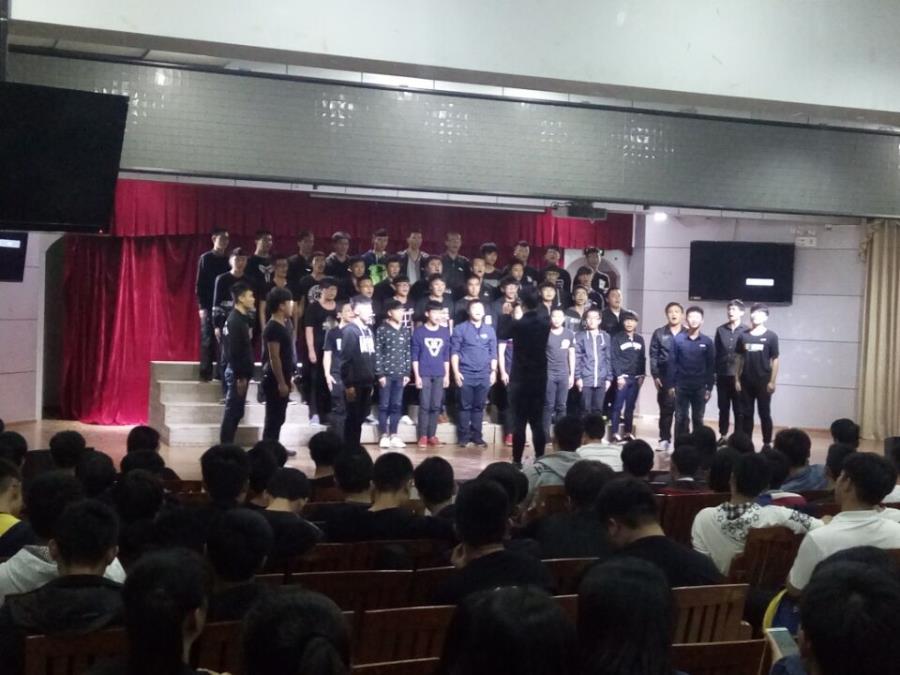 当前位置: 系部首页>学生工作 为了迎接院部的一二九大合唱,我系举行了“传红歌,颂祖国”大合唱比赛,来选拔优秀的人才参加一二九大合唱。本次到场的评委分别是:院团委黄心闲老师,基础部邹祎程老师,自动化杨娴老师,林伟岭老师,翁歆老师。嘉宾许志敏书记。这次比赛于2016年11月3日晚在17号201礼堂举行。