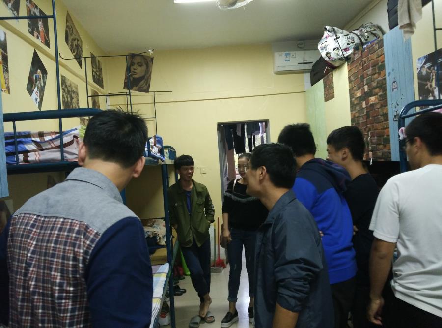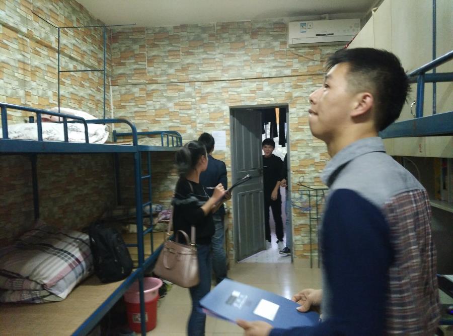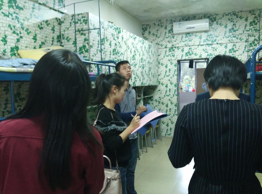当前位置: 系部首页>学生工作为给学生营造良好的生活环境,把学生寝室建设成整洁、有序、美观、文明的学生之家,培养同学们的团结、合作精神,进一步加强寝室管理力度,我系在2016年文化艺术节期间开展第三届宿舍文化节第二轮评选活动。本次活动由机械系党支部书记许志敏、社区辅导员、机械系辅导员和建筑系老师担任评委,16级全体学生参加。