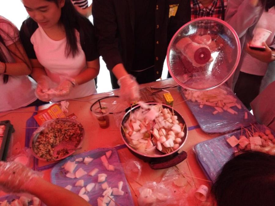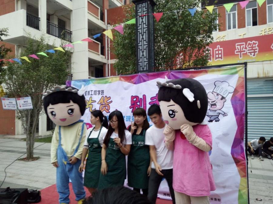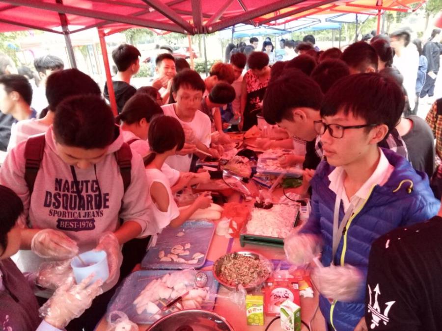 这次美食节,同学们热情高涨,积极参与。在实践部辛苦拉来的美食赞助下,机械系学生会的同学都忙开了,学校的操场上搭上了帐篷,帐篷里摆着一张张桌子,到处有同学们忙碌的身影:一时间,锅碗瓢盆声,叫好声响成一片。各种美食琳琅满目,让人垂涎欲滴。各个角落人山人海,这次美食节烹调的食品内容丰富,品种齐全,包括鸭肉饭、炸薯条、炸鸡柳、水果沙拉、蔬菜汤、烤鱼、奶黄包、水饺、饮料、面包等等。这些食品都色香味俱全,深受各位同学们的喜爱,而且多次出现供不应求的场面,很是火爆。还有唱歌赢蛋糕,套圈中饮料,手工体验火锅,现场煮咖啡等等一系列活动,其中具有代表性之一就是自己动手包扁食煮火锅,吸引了很大一部分同学,大家一起包扁食,虽然手法都不怎么熟练,但是还是呈现出开心的氛围,与出去吃有着不一样的意义,既在休闲时间里学会了东西,又促进了同学间的友谊。在这两者作用下,吸引到足够多的同学也就不足为怪了。学生会成员有的还穿上了我们湄宝的服装,吸引了很多人的眼球。