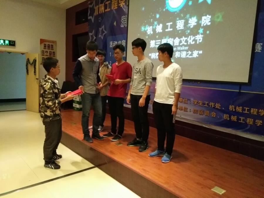 当前位置: 系部首页>学生工作为了营造良好的寝室文化环境,增强寝室凝聚力,加强寝室间的交流学习,同时也为了增进室友之间的友谊,领悟寝室这个第二家庭的魅力及重要性,我机械学院举办了第三届宿舍文化节,经过一系列的比拼,宿舍文化节在11月16日晚圆满结束。