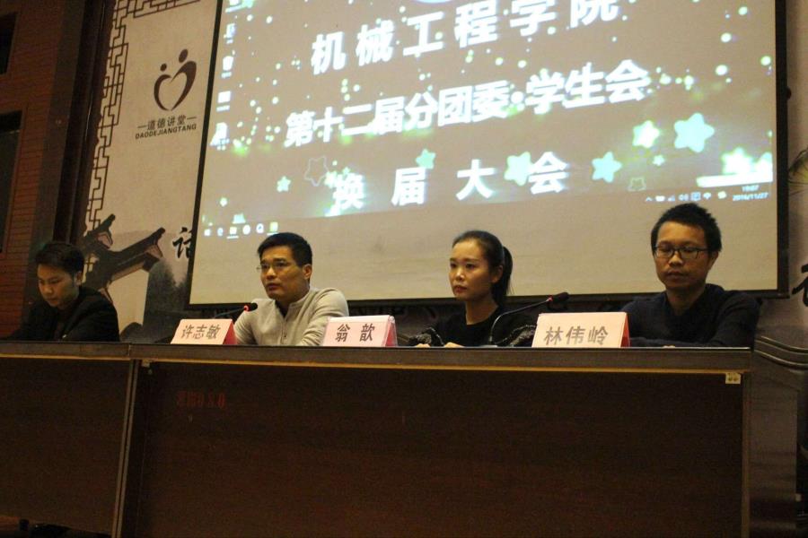 花须堪折直须折,莫待无花空折枝,时间如水 ,岁月如梭,转眼一个学年就要过去了,一年一度的机械工程学院学生会换届拉开序幕。我系学生会换届大会如期举行,出席本次换届大会的嘉宾有:院党总支副书记许志敏老师,院团委黄心闲老师,院分团委书记翁歆老师,院14级辅导员林伟岭老师,社区服务的范健健老师。