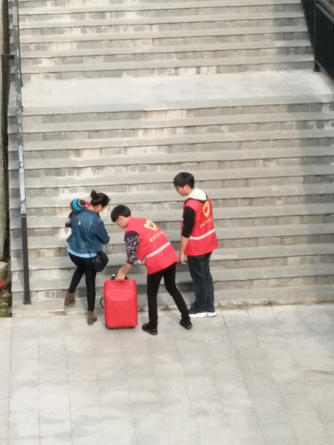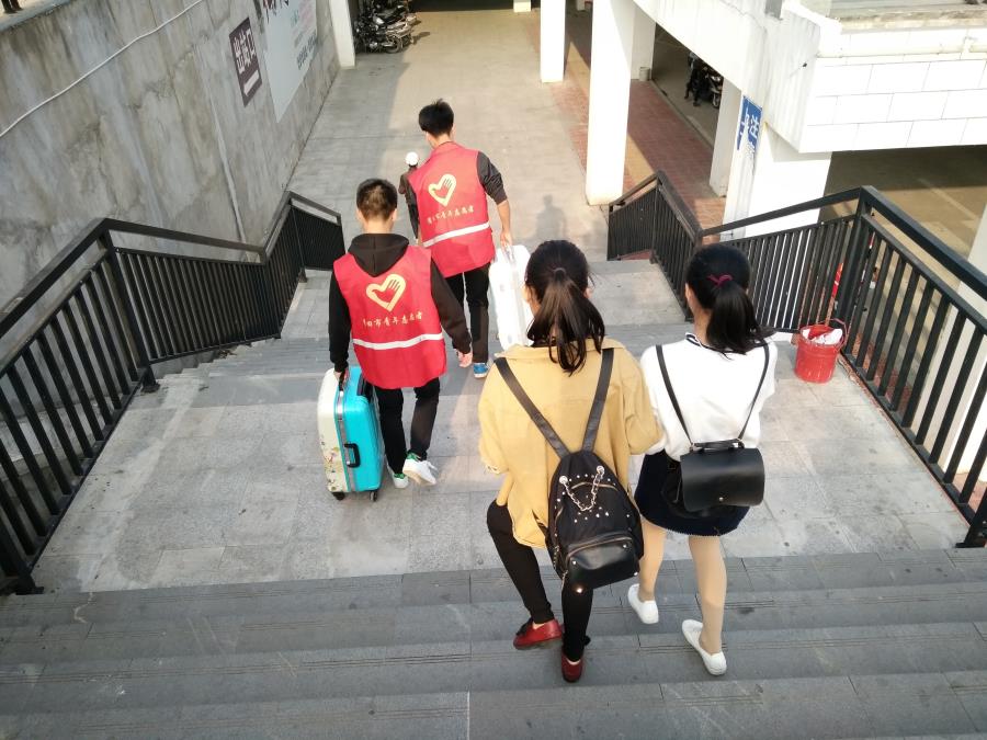 在志愿者工作最为辛苦的是帮忙搬运行李的同学,起初有些旅客是直接拒绝帮助,他们大概担心我们机械系小伙伴是想拿走他们的东西(蓝瘦,香菇),我们大机械的小伙伴们起初很是尴尬,但是我们机械小伙伴都及时调整好心态,继续投入志愿者的工作。大家向游客们不断解释和介绍,最终让游客们相信我们的好意,顺利的展开了志愿活动。值得一提的是我们大机械小伙伴们帮忙提行李一直都没有停下休息过,在回到工作岗位的途中遇到行李多者,他们也毫不犹豫的帮助搬运,大大减轻了旅客负担。