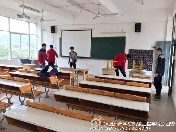在33#303集合后,在主席团分配任务后,各部门部长带领各自部门成员开始了工作。全体成员齐心协力,一直忙前忙后,抬桌子,拖地。排好桌子,整理教室。大家互相帮忙,在所有成员的共同努力下,圆满的完成了这个任务。