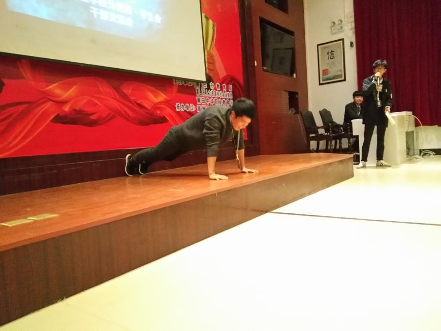 会议一开始,便是大二学长们做俯卧撑,其中还包括了主席团的3位学长,这是怎么回事呢?原来是学长们开学初系部岗位工作没做到位在接收惩罚呢,这也算是为大一“小鲜肉”做“榜样”吧!接着是各位部长学长为“小鲜肉”分享了自己大一当“小弟”时趣事,“小鲜肉”也为大家讲述上学期在学生会的一些收获与看法。
