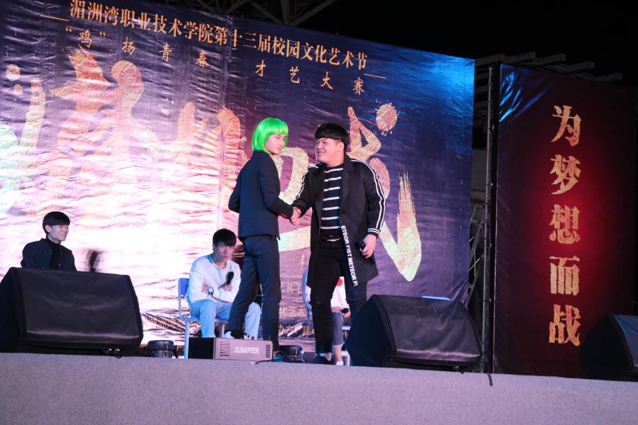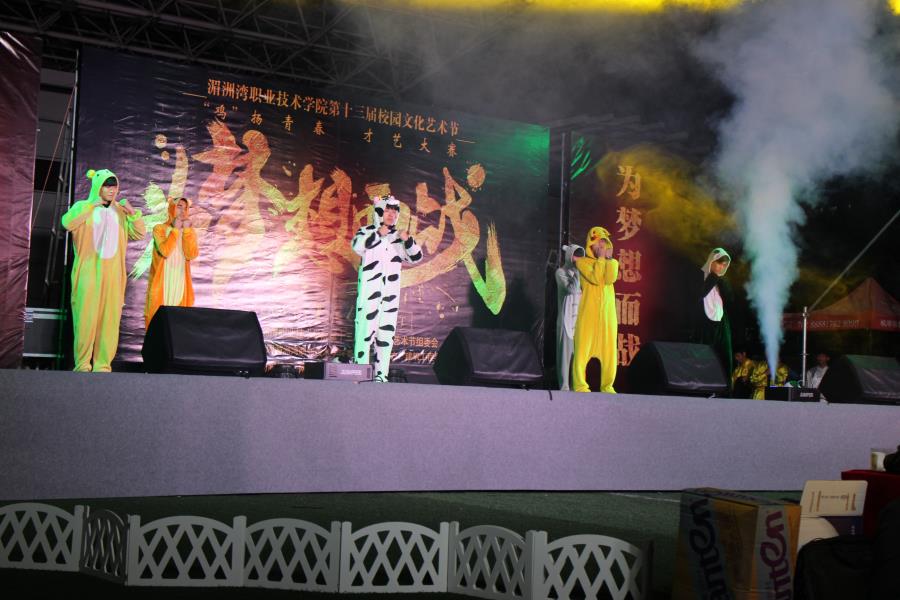当前位置: 系部首页>学生工作 3月28号晚上7点在400米操场举行了湄洲湾职业技术学院第十三届校园文化艺术节此次口号为‘鸡’扬青春才艺大赛。