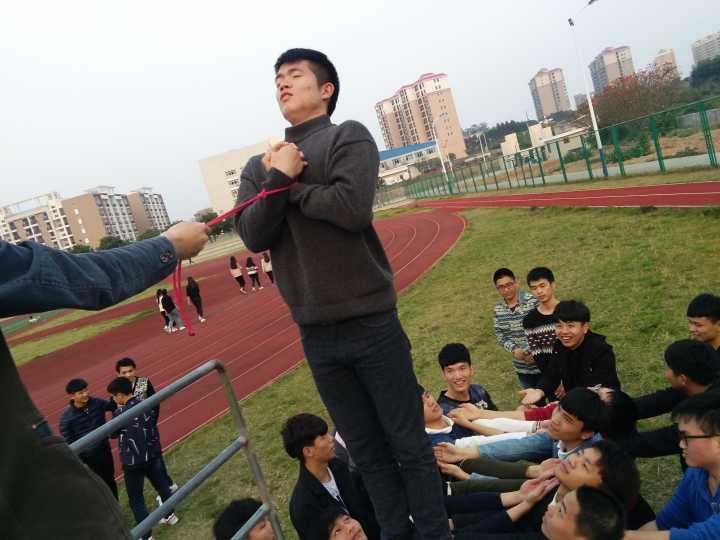 为了适应21世纪人才培养的需求,加强大学生素质教育,培养现代化建设需要的知识结构合理、能力强、素质高,富有创新精神的专门人才,2.29下午放学我系大二学长在400米操场举行素质拓展活动。大家陆陆续续的来到操场,到场的有林老师和翁老师以及大二学长还有几个大一的小伙伴为他们加油。各个队伍排好队由林老师讲好了项目游戏规则,然后各个队伍练习了20分左右。然后我们的小伙伴们开始了激烈而友好的比拼,活动过程紧张而激烈。有时候也有小伙伴给场上的同学开玩笑紧张中带有轻松愉悦的氛围。其中信任背摔十分有趣信任同伴、相信队长是我们融入团队,开展工作的基础。我们的“信任背摔”项目就让大家学会信任同伴、相信团队。最后拍完我们的集体照我们陆陆续续的散了,今天的活动真是十分有趣,小编十分期待下次活动。