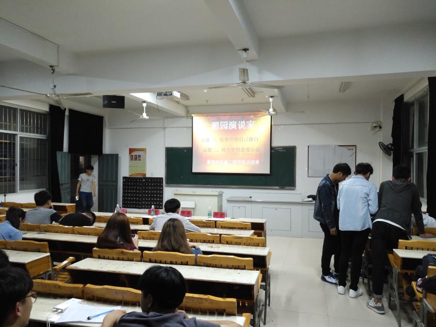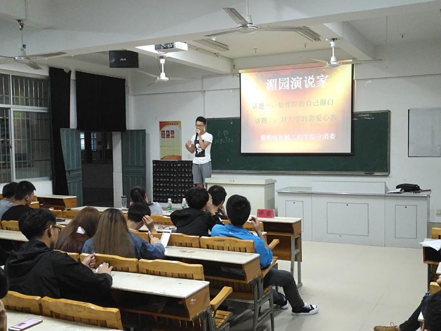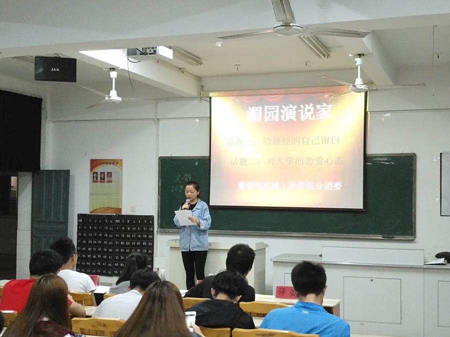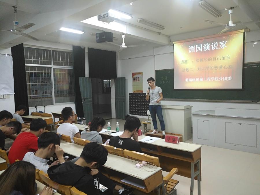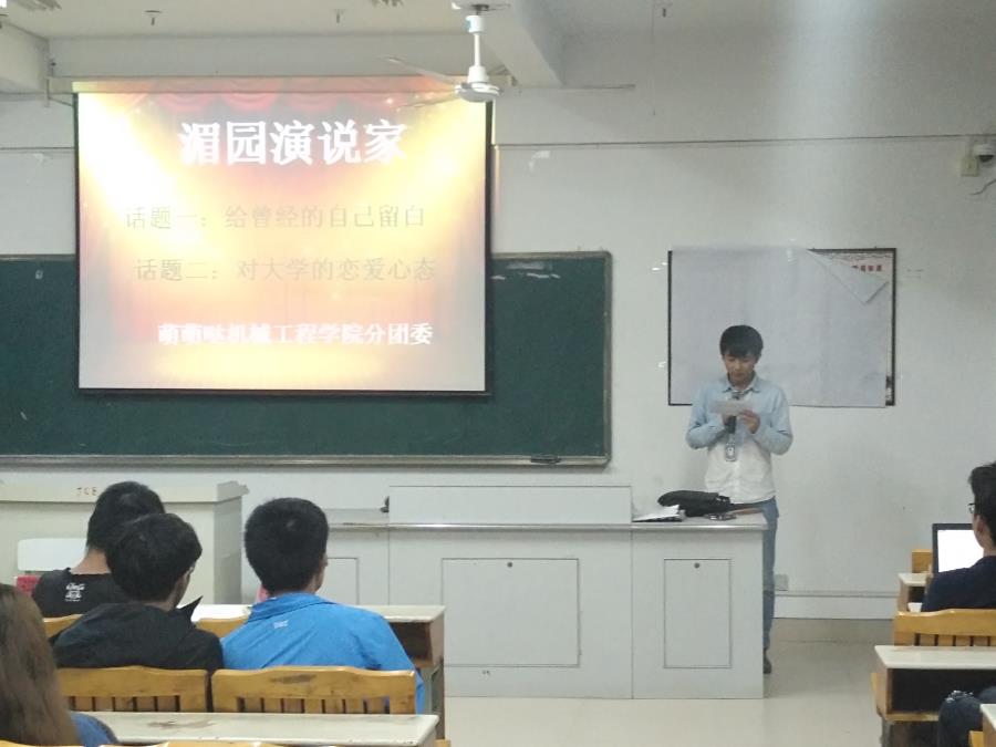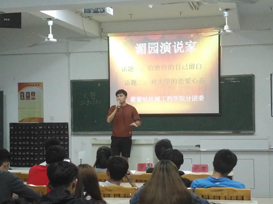 当前位置: 系部首页>学生工作4月26日,由机械系分团委学习部组织,机械工程学院同学们参加的“湄园演说家”比赛在32号楼302举行。本次比赛以“给曾经的自己留白”和“对大学的恋爱心态”两个话题二选一进行拼搏,院团委黄心娴老师,机械系分团委书记翁歆老师,机械系16级辅导员林伟岭老师担任此次活动评委。