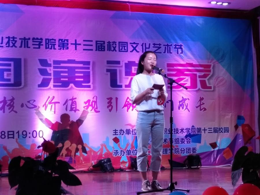 当前位置: 系部首页>学生工作2017年5月8日晚7点,湄职院第十三届校园文化艺术节之“湄园演说家”演讲比赛在17#201隆重开幕,我系机电152班张永佶,汽服161肖静参加此次比赛,基础部杨丽贞老师、郑元清老师、叶葳葳老师、人事处黄林毅老师、团委李超老师担任评委嘉宾。