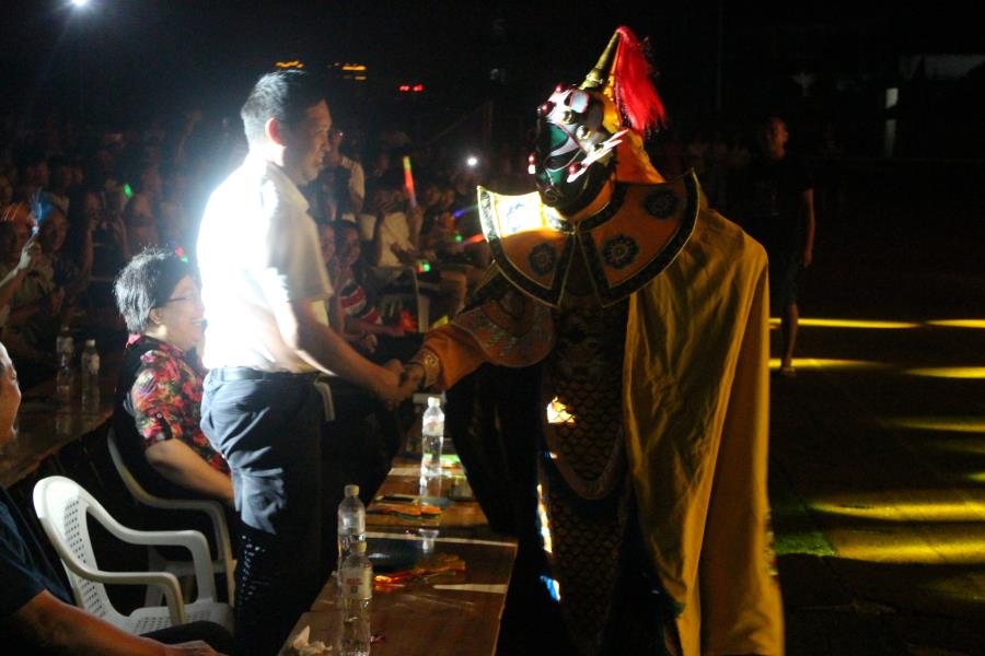 这是郑岳彬表演的莆仙戏变脸在和我校领导互动