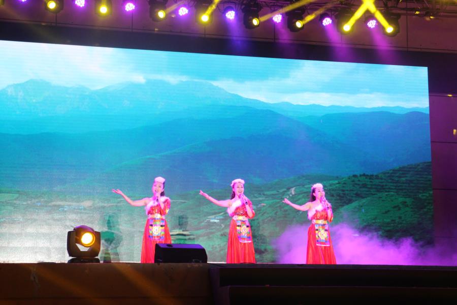 这是由女声小组演唱的《再唱山歌给党听》