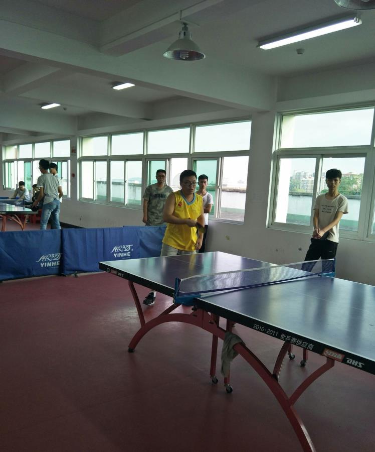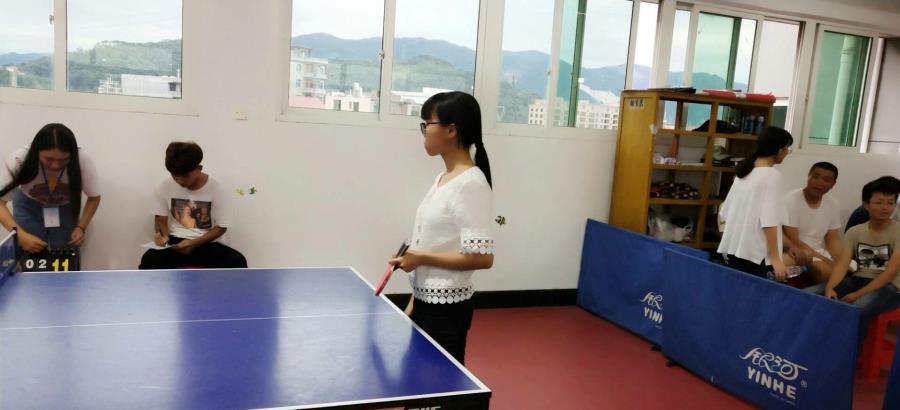 当前位置: 系部首页>学生工作 10月16号为丰富我校学生课余生活,培养同学们团结合作精神,湄洲湾职业技术学院举办乒乓球新生体育赛开始了,我系也有5名同学参加比赛,地点在图书馆六楼的乒乓球室。