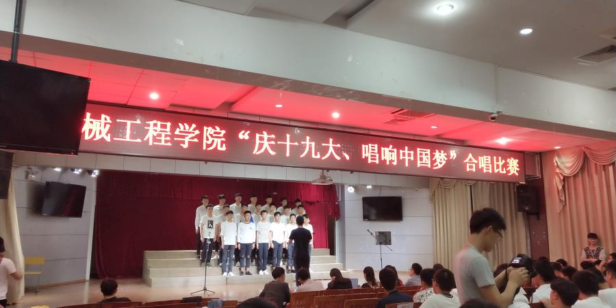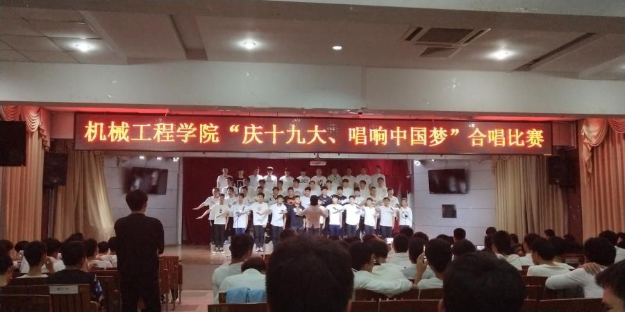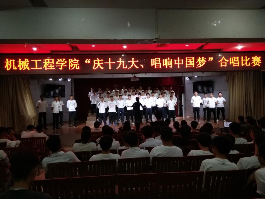 当前位置: 系部首页>学生工作为全面贯彻落实党的十九大精神,11月6日晚,由机械工程学院学生党支部、分团委学生会举办的“庆十九大,唱响中国梦”合唱比赛在17号楼201教室举行,学工处林俊副处长、机械学院李仲清副主任、许志敏副书记出席了这次活动,基础部音乐教研室的邹祎程、翁歆两位老师以及黄剑萍、林伟岭、朱涵三位辅导员担任此次比赛的评委。