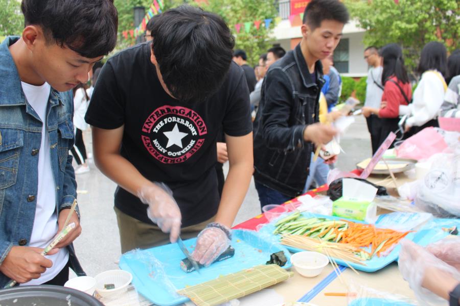 经过了近一月的准备与宣传,在学生会干部一起精心策划和卖力宣传,标语、宣传单、海报、场地人员分布、活动游戏设计等等分工明确,综合考虑到各方面大大小小的问题使活动举办的更加完善与精彩。特别是实践部的同学们前三星期前往枫亭镇各家店铺,哪里有好吃哪里就有实践部。在众多家摊位上摆满了各种美食琳琅满目,五花八门好让人垂涎欲滴,成功吸引了众多学生同学前来观赏品尝。食物品种齐全,蛋糕,寿司,烧烤,炸鸡,水煮鱼,石锅鱼,扁食,水饺,水果等等。其中寿司摊位上在现场的寿司店老板更是教大家如何做出漂亮又美味的寿司吸引了很多同学。大家都纷纷动手尝试,在休闲的时间里不仅提高了动手能力还促进了同学们的友谊。
