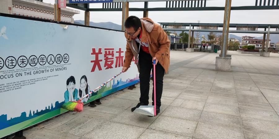 学生会成员们认真的打扫着动车站里的卫生