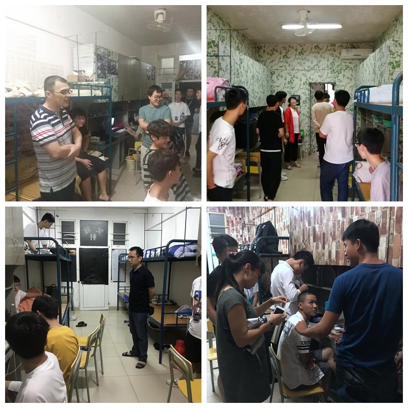 新生已完成报道注册,随着新生入住,宿舍也随着热闹起来。晚七点,党总支书记黄林毅带领新生班班主任、新生辅导员、代班深入新生宿舍,慰问和看望新生,了解新生到校情况及寝室生活条件,把关心和问候带给了每一位同学,提醒同学们要注意人身财产安全,杜绝出现任何安全事件。同时,勉励新同学要在班主任老师、新生辅导员的帮助下,迅速适应新角色,尽快融入到新的学习生活环境中来,树立明确的学习目标,坚持良好的学习习惯,真正学到技术技能,为将来走向社会创造自身价值,实现人生理想打下坚实基础。