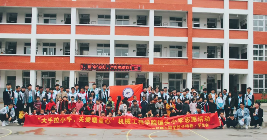 2月28日下午, 机械工程学院学生会组织了四十余名志愿者来到枫亭镇铺头小学,与一年级的小朋友们开展“大手拉小手,关爱暖童心”志愿服务活动,虽然午后下着雨,但志愿者们的热情不减,他们在班级里向小朋友们介绍雷锋生平事迹,传播雷锋乐于助人的精神,还教小朋友们学唱歌曲《学习雷锋好榜样》。