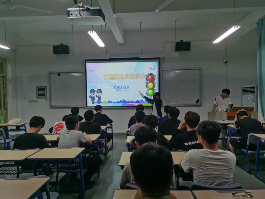 当前位置: 系部首页>最新消息为了让学生知危险、会避险,使学生进一步增强道路交通法制观念,提高交通安全文明意识,机械工程系2019级学生于2020年11月13日在公教北101开展“交通安全”主题班会。