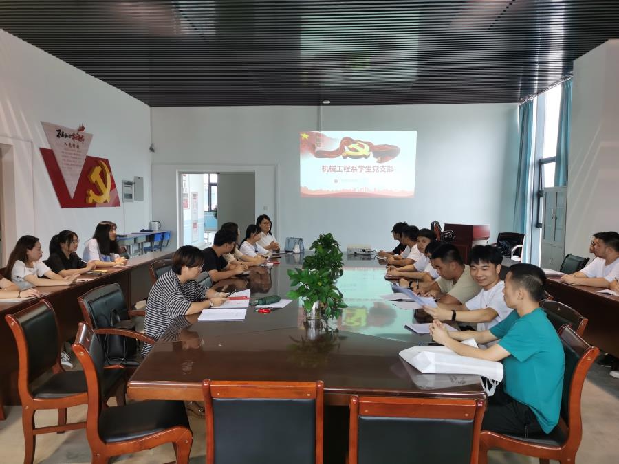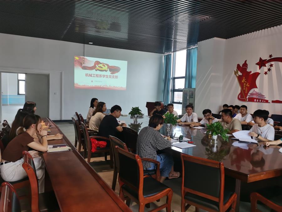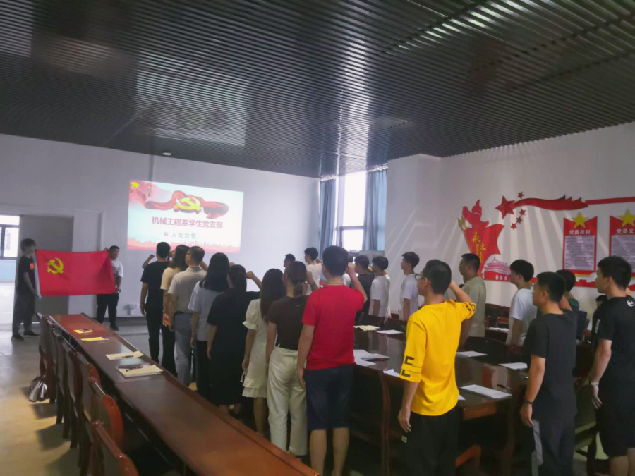 当前位置: 系部首页>最新消息又是一年离别时,为使毕业生党员坚持以习近平新时代中国特色社会主义思想为指导,鼓励、引导毕业生党员不忘初心,秉承“学为成人”校训精神,坚定信念,以实际行动在文明离校过程中和走向社会后,发挥好党员的先锋模范作用,最终投身到中国梦的伟大实践中。6月23日,在机电楼党员会议室,机械工程系学生党支部召开了“重温入党誓词,争做优秀党员”六月份主题党日活动,暨“花开疫散终有时,放飞梦想再启航——毕业生党员离校前主题教育活动”。支部全体党员教师及2021届毕业生党员、预备党员和入党积极分子出席了此次活动。