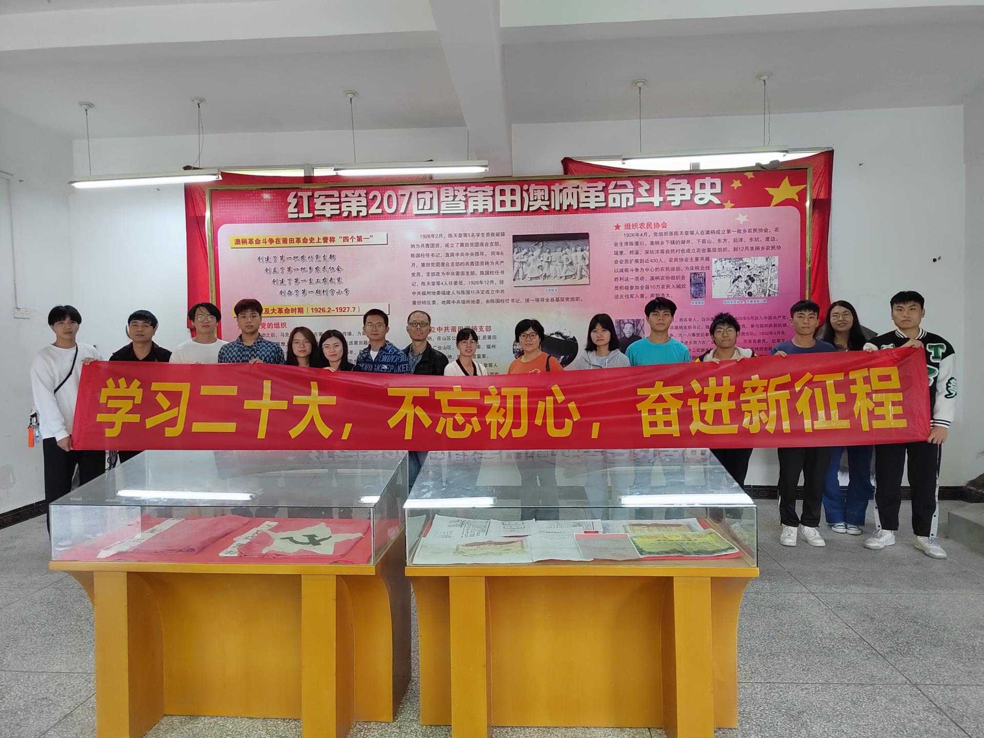 莆田市澳炳村革命斗争在莆田革命史上誉称“四个第一”:创建了第一批农村党支部,创立了第一批乡农民协会,创建了第一支工农武装,创建了第一期列宁小学。许多革命前辈英烈的英勇事迹在这块红色土地上传颂,红军207团旧址陈列馆还是省、市级“党史教育基地”。学习完党的二十大精神,师生们参观革命遗址,更能加深对那段光辉党史的理解。正如陈列馆上写的大字:红旗不倒,战斗不熄!