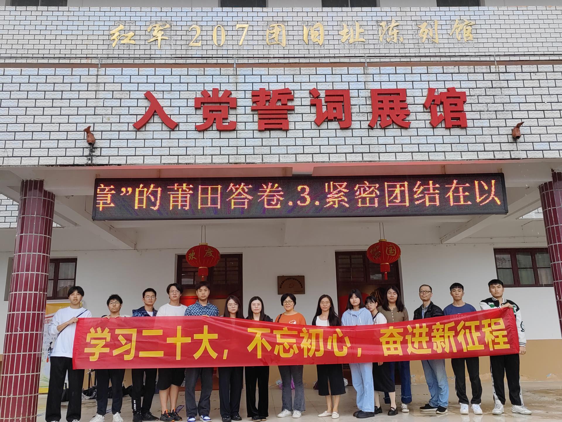 习近平总书记在党的二十大报告中指出,弘扬以伟大建党精神为源头的中国共产党人精神谱系,用好红色资源,深入开展社会主义核心价值观宣传教育,深化爱国主义、集体主义、社会主义教育,着力培养担当民族复兴大任的时代新人。智能制造工程系学生党支部联合教工党支部前往红军207团旧址开展题为‘学习二十大,不忘初心,奋进新征程’的党日活动。