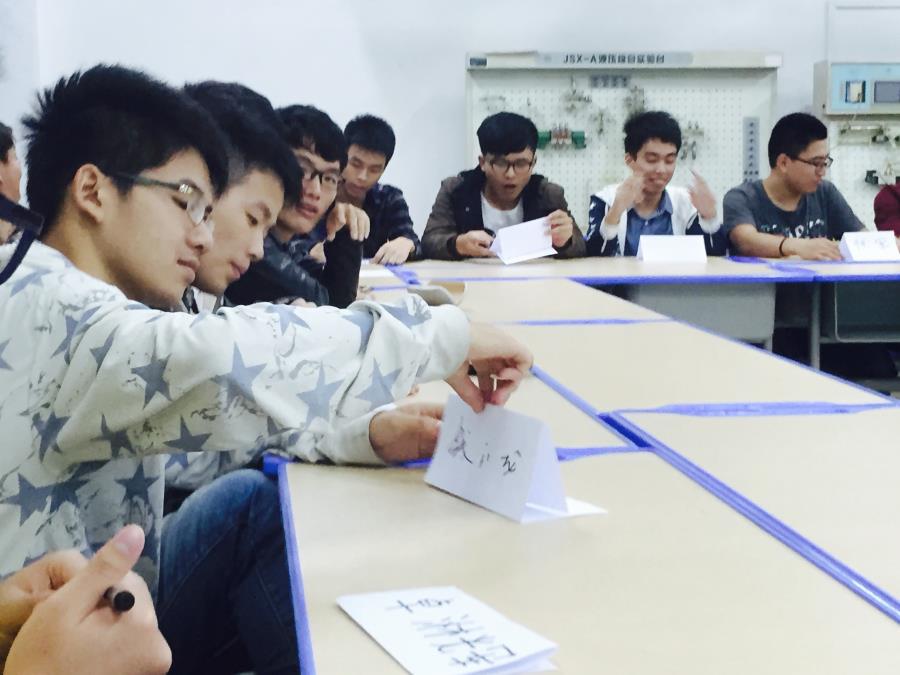 每位学员们制作了自己的桌牌,以便更好的认识大家和相互交流。第一个项目是“记住每位学员的名字”,每位同学通过“我是××旁边的××旁边的××…”的介绍,让小伙伴们很快熟悉起来;第二个项目是班级沟通,首先是一个“闭眼折纸”的小游戏使同学们明白了沟通的重要性;接着,班主任林志荣老师介绍了中国的八大职业能力与澳大利亚的核心通用能力,与学员们就京东方班课程活动所要侧重培养的能力、以及培养途径进行了沟通交流,2015级京东方班通过京东方特色企业课程(包括历史文化篇、职业素养篇、产业知识篇、精益生产篇)、京东方线上课程、企业参观实践、主题班会、素质拓展、新老生经验交流以及活动的组织实施等方式着重培养交流观点与传递能力、与他人和团队共事能力、信息处理能力、计划和组织活动能力、自我管理能力等五大能力,针对能力培养的考核,与同学们交流并通过了《湄洲湾职业技术学院2015级“京东方班”奖学金评选办法》,“京东方班”奖学金将从态度(线上、线下活动参与情况)、课程学习、团队合作、个人综合能力(《我的京东方之路》PPT设计大赛)四个维度对学员们进行评价,对京东方班学员参加活动做了课堂约定,要求京东方班学员做事守时、迅速,讲求效率,态度积极认真,有团队意识,师生共同遵守,同时,本期京东方班的运行将试行实现班级自我管理,今后京东方班活动的策划、组织并具体实施均由京东方班团队依据《2015级京东方班活动任务单》轮流完成;第三个项目是团队破冰,京东方班分为4个团队,每个团队必须在短时间内完成确定队长、团队名称、标识制作、口号及团队招牌动作,并进行解说和可视化展示。