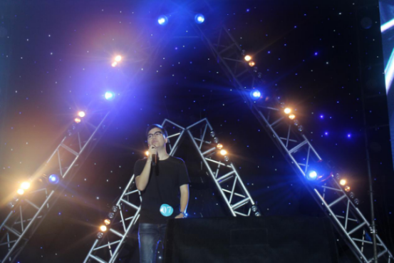 “接下来有请8号选手演唱…… ”在主持人介绍下一首歌曲时,一个身着机械系服的小伙子却在舞台中央与主持人嚷嚷下个节目是他的,是他的,随即跑到台下自个旁若无人的跳起舞,随着歌曲《青苹果乐园》的响起,灯光的渐渐打亮,从观众席的四面八方源源不断地有学生冲向主席台前的跑道,加入其中,最终形成了一个一百多人的集体舞蹈。这次快闪是本场总决赛的协办方机械工程学院的精心策划,为了给全场观众一个惊喜,机械工程学院分团委集结了一百多名学生,坚持近一个月的排练,才将这个快闪舞蹈完美地呈现给大家。
