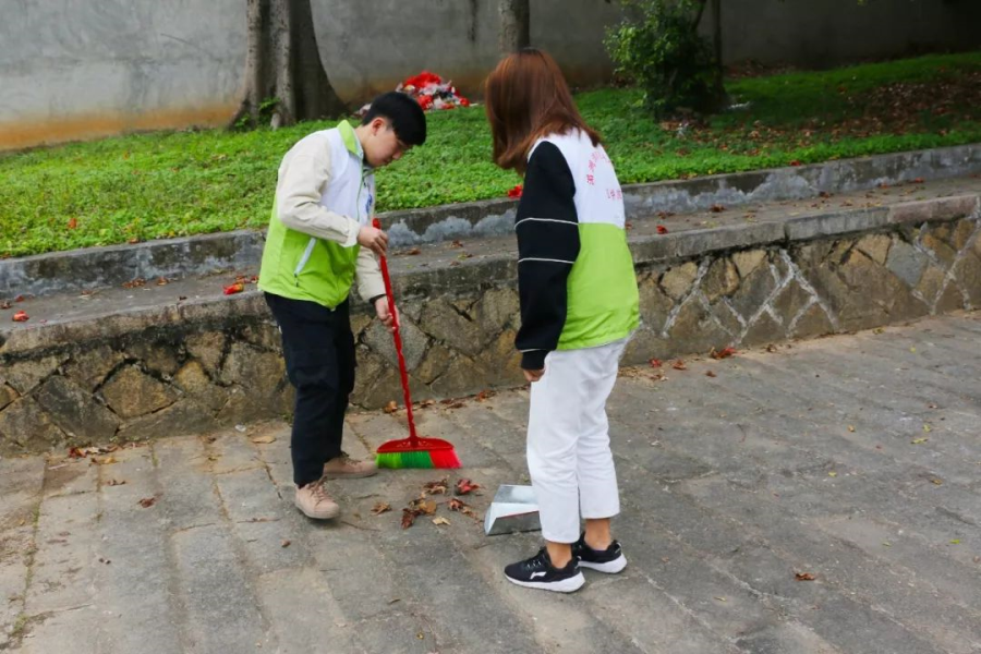 大家拿出清扫工具仔细认真清扫,不放过任何一个角落,井然有序,用实际行动缅怀先烈。