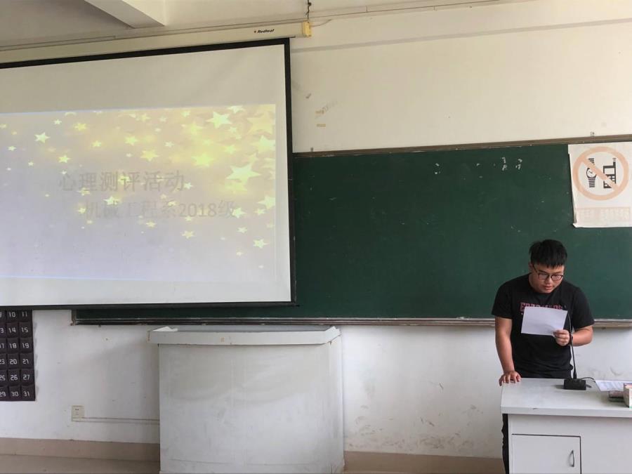 为深入了解学生心理健康状况,加强学生管理,做好心理健康教育工作。机械工程系辅导员邱淑娇于2019年4月9号在33号楼#403开展心理测评活动。机电182心理委员林祯晔宣读指导语,指导同学有序开展心理测试。