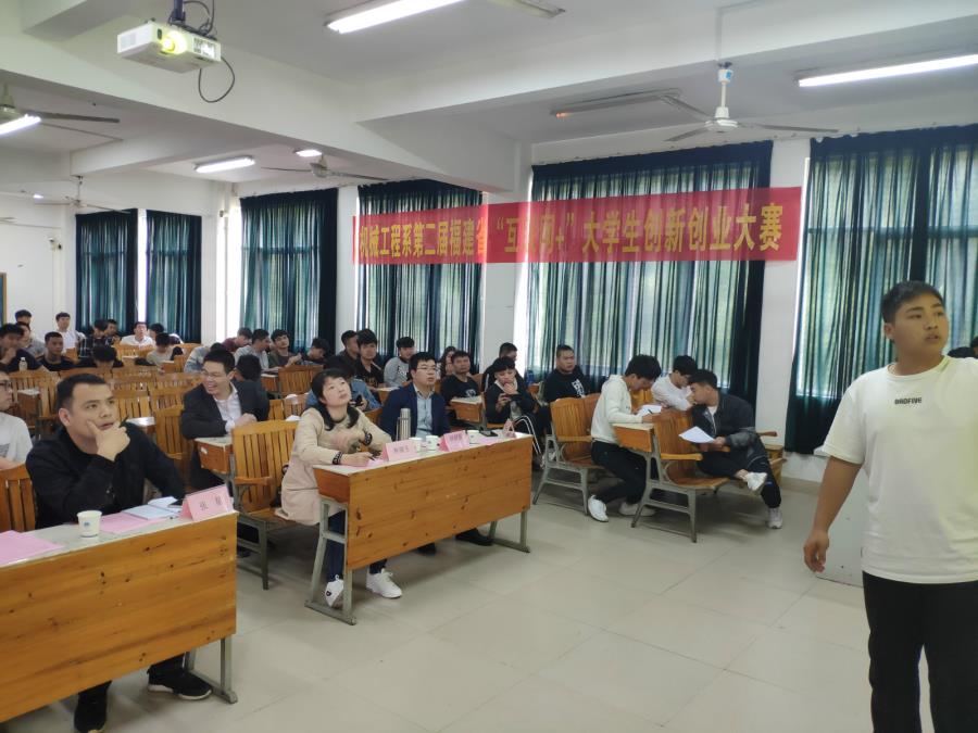 当前位置: 系部首页>学生工作为深入贯彻落实全国教育大会精神,加快培养创新创业人才,持续激发机械工程系学生创新创业热情,展示我系创新创业教育成果,2019年5月7号机械工程系在33号楼303多媒体教室举行了第二届“互联网+”创新创业大赛。教工党支部书记张星、党总支委员林志荣、教务处老师林群强、任课老师林丽生、行政老师陈琳升和辅导员曾嘉靖担任比赛评委。辅导员邱淑娇维持现场秩序。